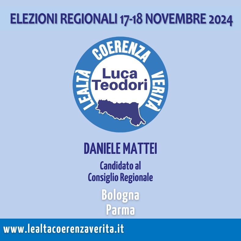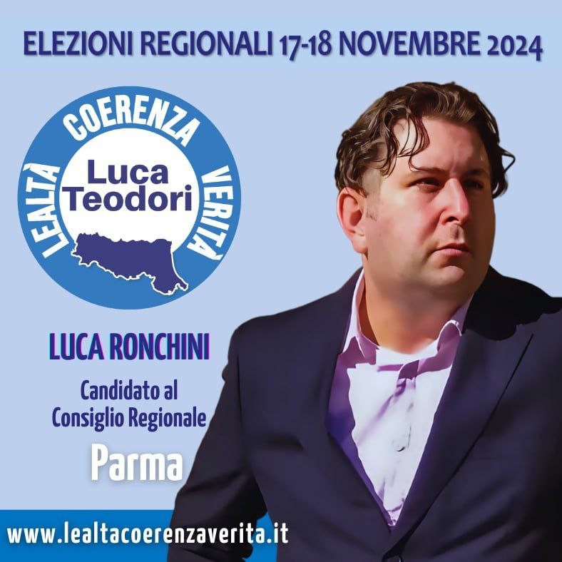 Sono di Parma, ho 42 anni e sono un uomo dedito alla famiglia. Lotto per ideali oggi trascurati. In questa lista civica rivedo il desiderio di libertà, verità e onestà, per una politica trasparente e centrata sui cittadini, garantendo un benessere quotidiano sempre più difficile da mantenere.